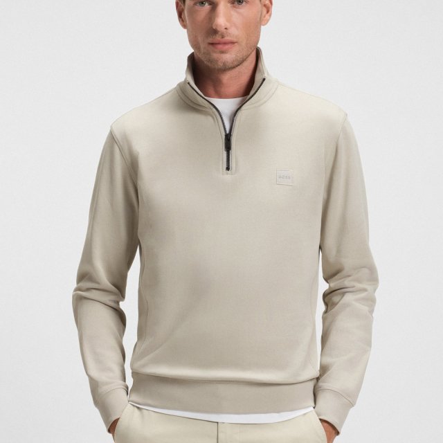 Boss Men’s Brown Zip-Up Turtleneck Cotton Sweatshirt – Fall/Winter Essential