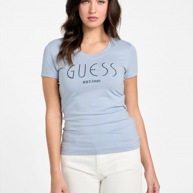 Discover effortless style and comfort with the Guess Women’s Light Blue Printed Cotton T-shirt. Perfect for your Fall/Winter wardrobe, this chic and versatile t-shirt is a must-have addition to any fashion-forward woman’s closet. Designed with a modern yet classic appeal, it pairs easily with everything from jeans to skirts, giving you endless outfit possibilities for those cooler days.