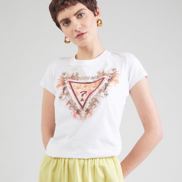Looking for the perfect blend of style and comfort this season? The Guess Women’s White Print Short Sleeve T-Shirt is a must-have addition to your wardrobe. Designed for women who want to stay chic without sacrificing comfort, this versatile T-shirt pairs effortlessly with jeans, skirts, or your favorite casual trousers. Whether you’re out for a coffee run or enjoying a laid-back weekend, this T-shirt is your go-to choice for a relaxed yet stylish look.