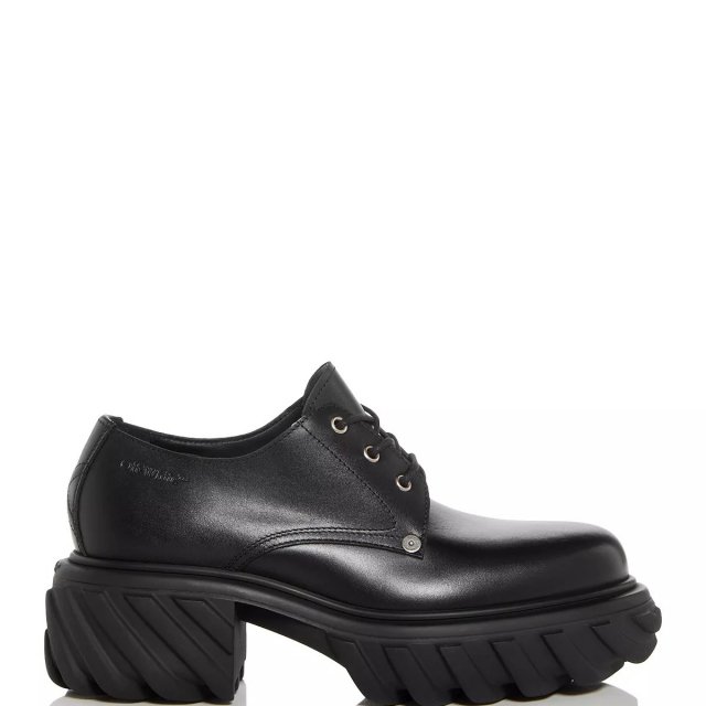 These black leather shoes from Off-White are more than just footwear; they’re a statement. Designed with a sleek silhouette and modern flair, they’re perfect for anyone who values both style and comfort. The back and side logo detailing gives it a distinct signature that sets it apart from ordinary shoes. Whether you’re dressing up or down, the versatility of the lace-up and monkstrap design allows you to wear them with ease on any occasion.